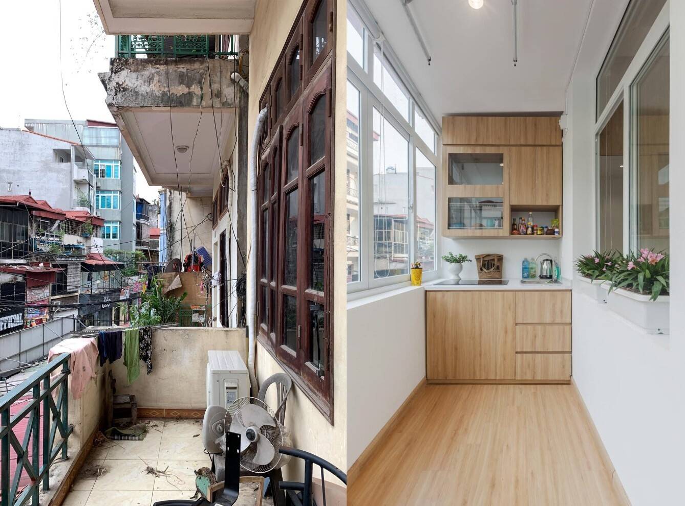 Một ví dụ về ban công chật hẹp được cơi nới trở thành góc bếp xinh xắn
