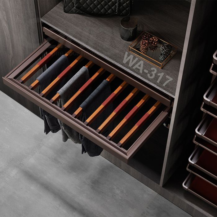 Hệ thanh suốt treo quần dài WA317-900 Khung nhôm sơn tĩnh điện màu nâu đồng, ray giảm chấn.